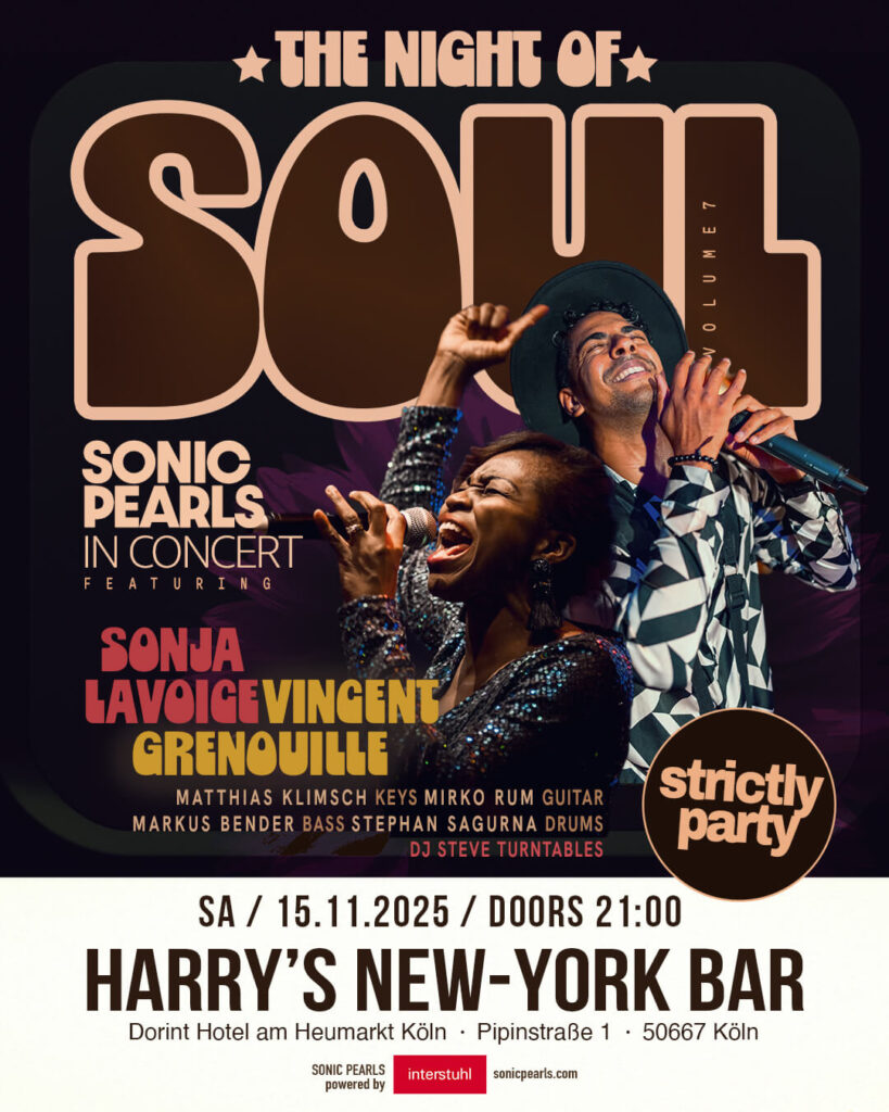 Strictly Party – SONIC PEARLS feat. Sonja LaVoice & Ron Jackson in der legendären „Harry’s New York Bar“. HNYB SATURDAY NIGHT CONCERTS… yeah, die Livekonzert-Reihe in der coolen Cocktailbar im…